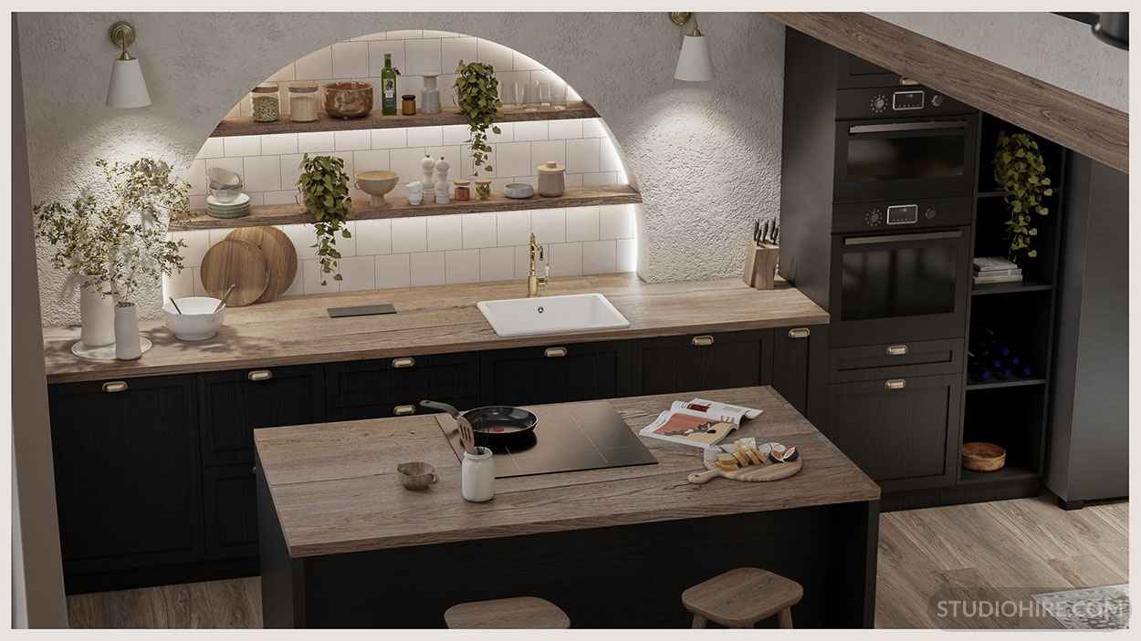 Fully equipped kitchen studio created for professional food shoots, accommodating crews of up to 20 people.