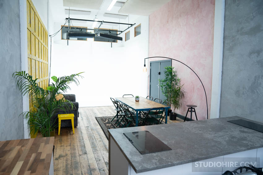 Our new large, concrete design shoot kitchen is designed to match the exterior warehouse character and add contemporary style to the scene.