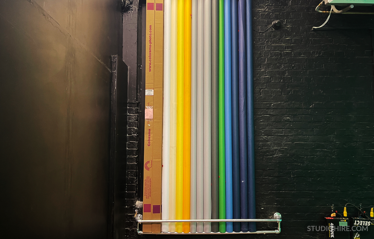 Selection of 2.7m Colorama paper backdrops; if you are looking for a specific colour, check whether we have it and if we don't, we can order it in for you in advance.