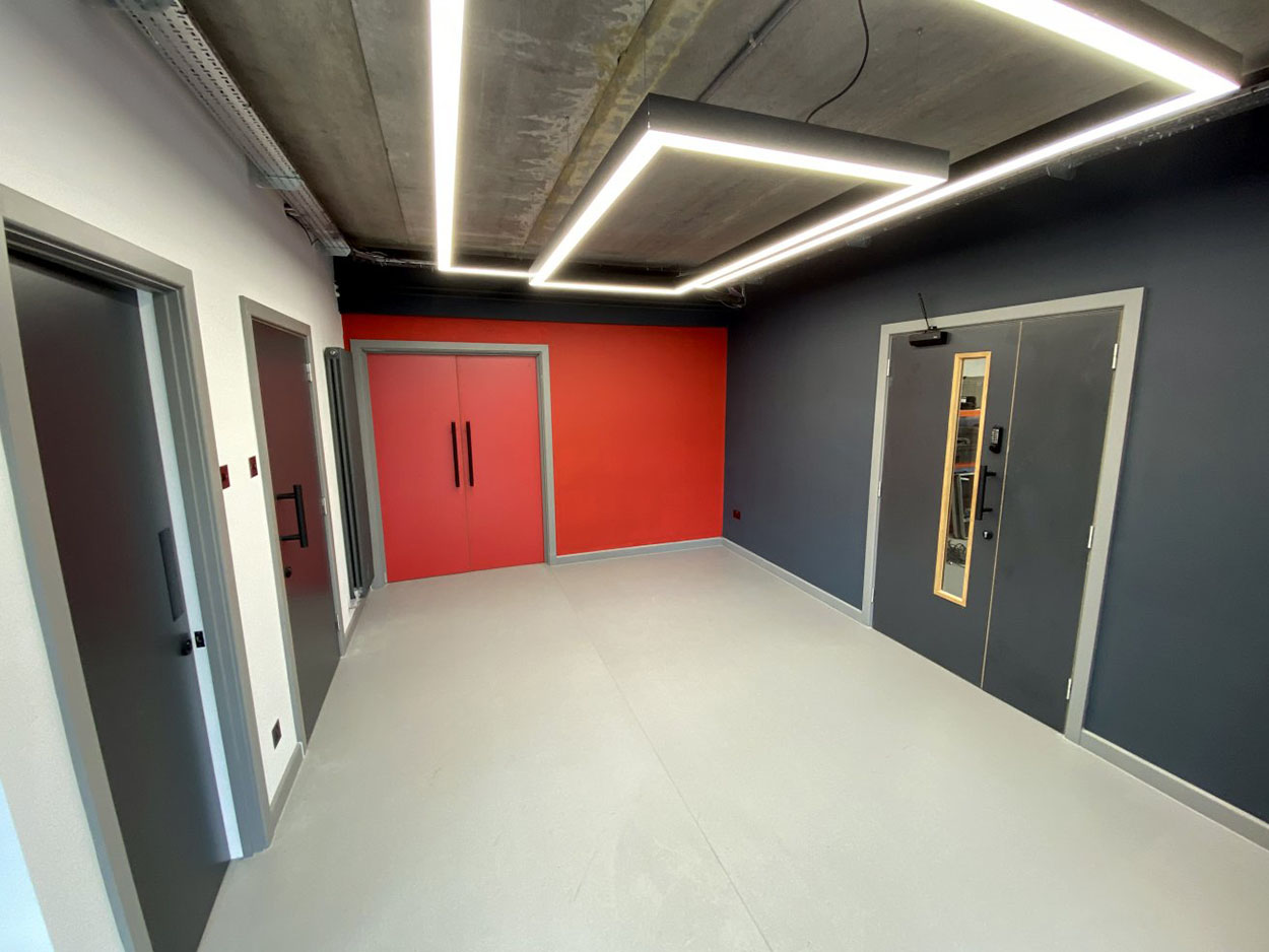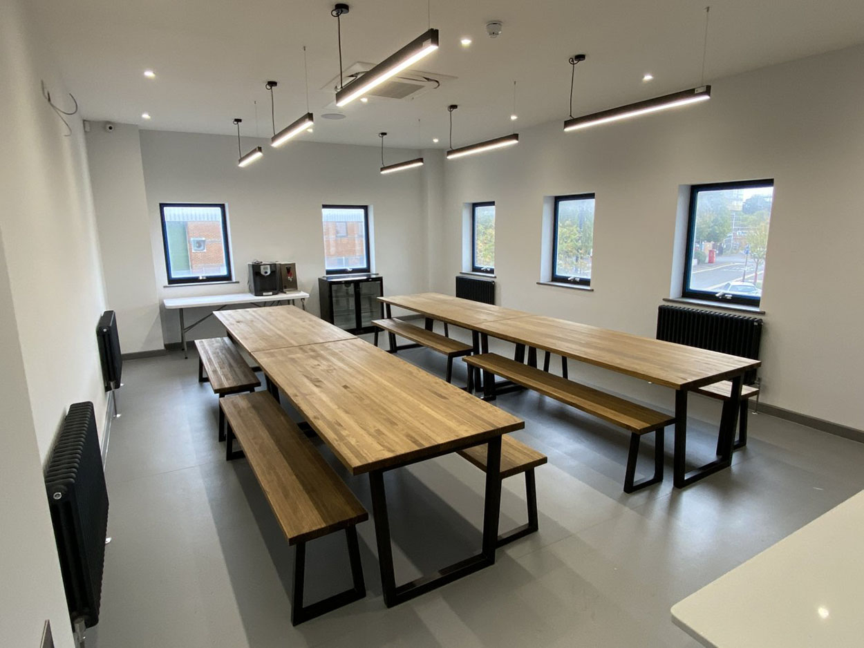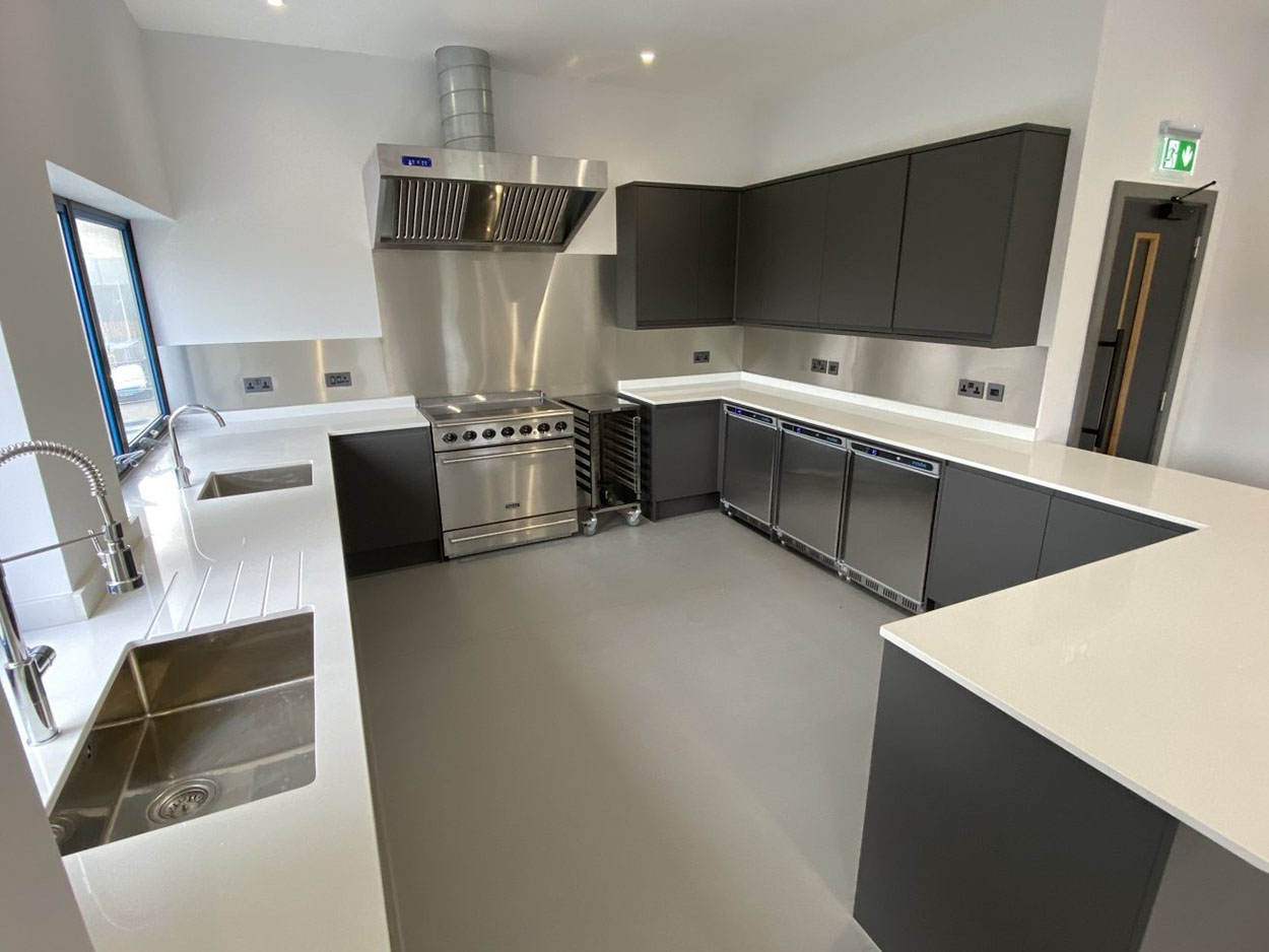 Purpose built, versatile space with private production office + large open plan kitchen + dining area.