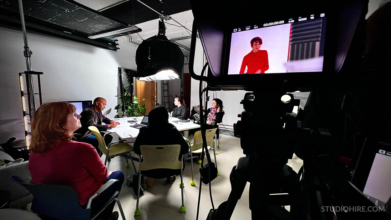 We can set up for 2, 3, 4 or more people conversations, making it ideal for interviews, debates, or small panel discussions.