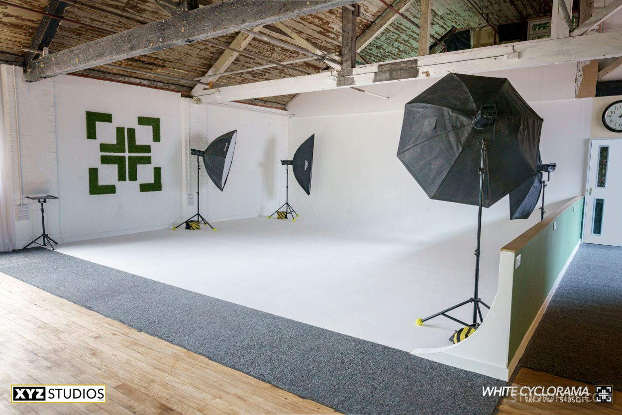 The centrepiece is our 7m wide white infinity cove, a seamless backdrop for capturing all your photography or video projects.