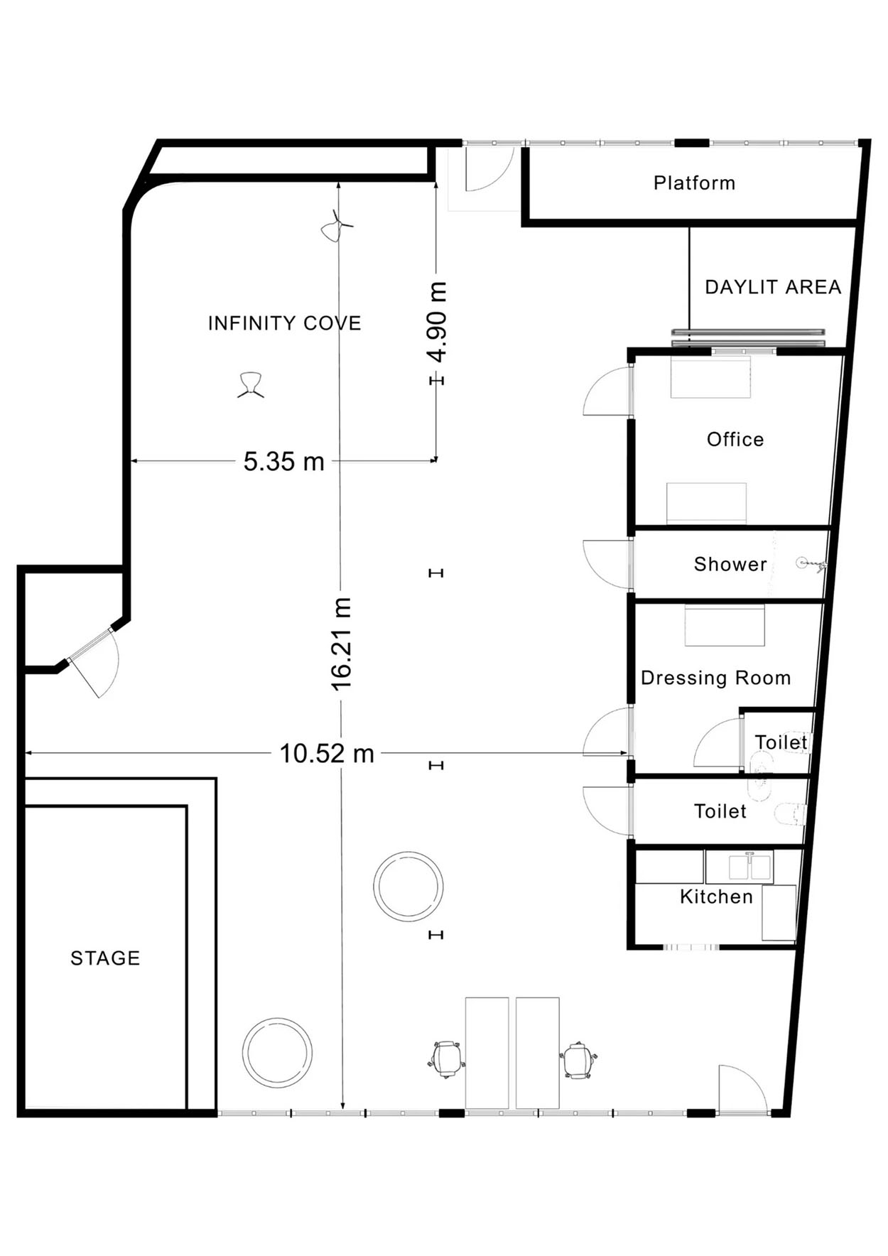 As well as the infinity curve and studio light setup, gorgeous large windows let in plenty of natural light for a range of options.