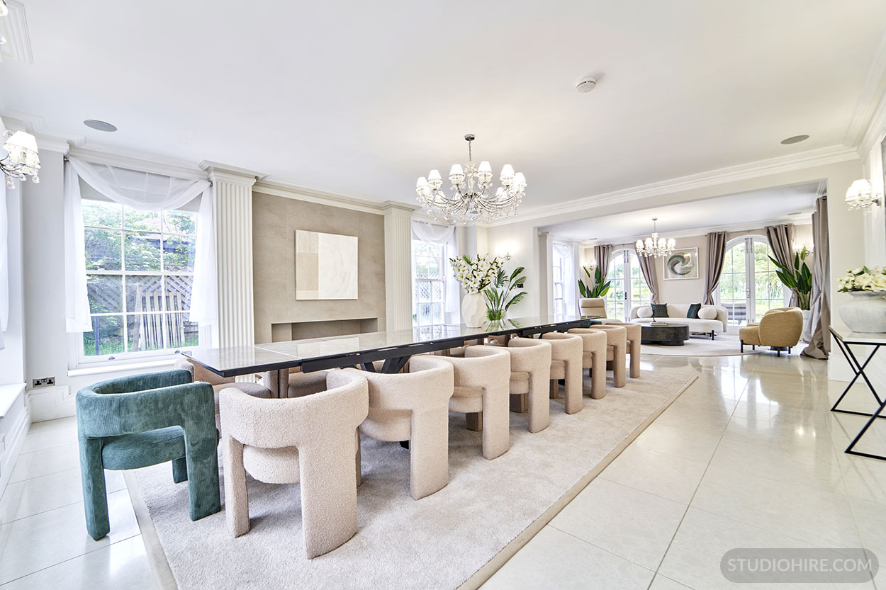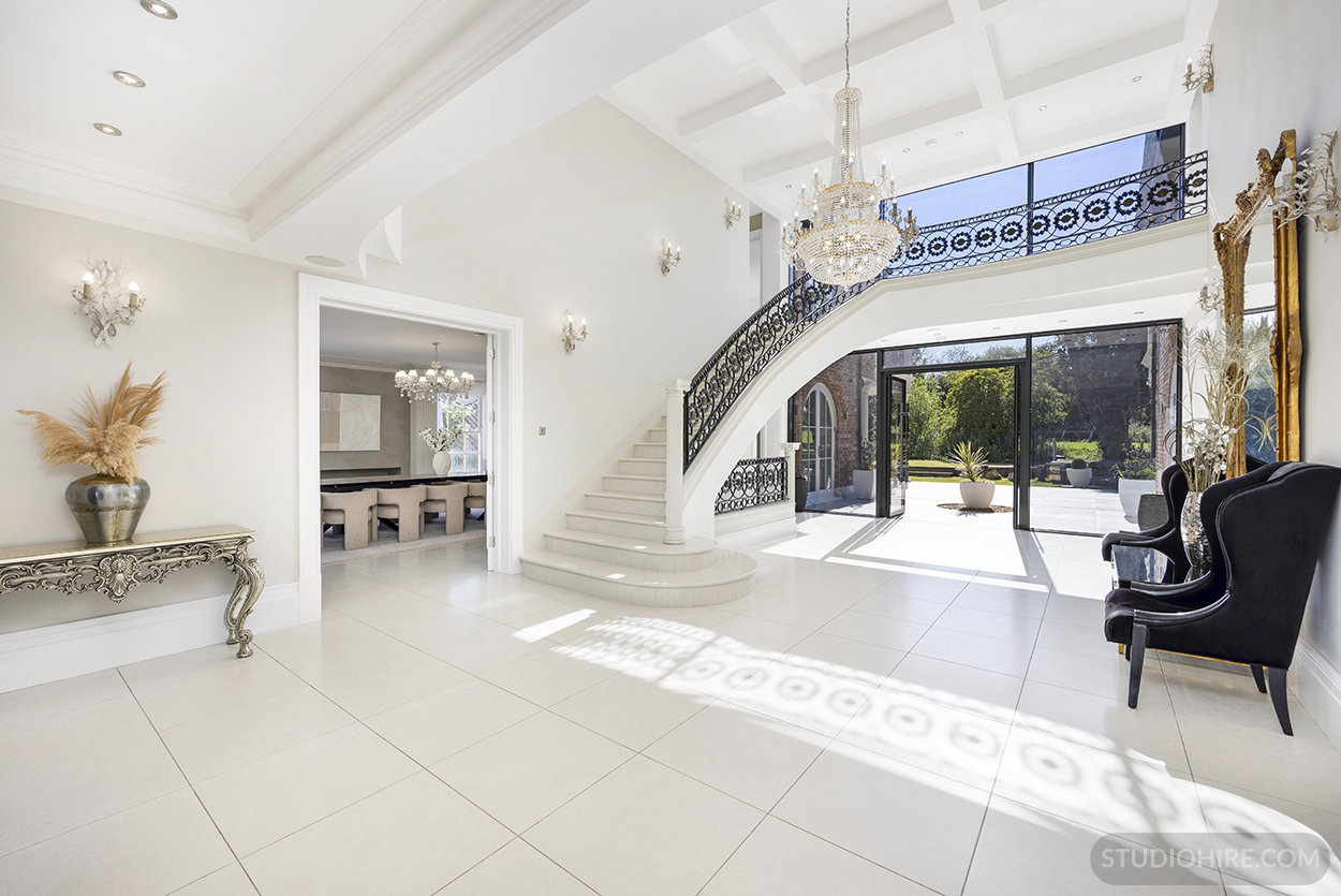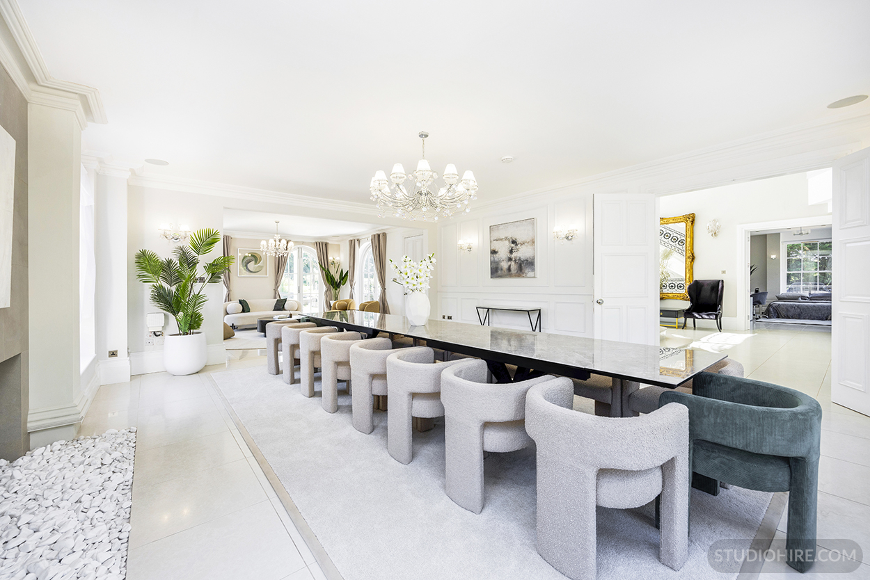 Set in the peaceful Essex countryside just 45 minutes from London, this striking neo–Georgian mansion offers a high–end, versatile backdrop ideal for filming, photography, content creation and brand shoots.