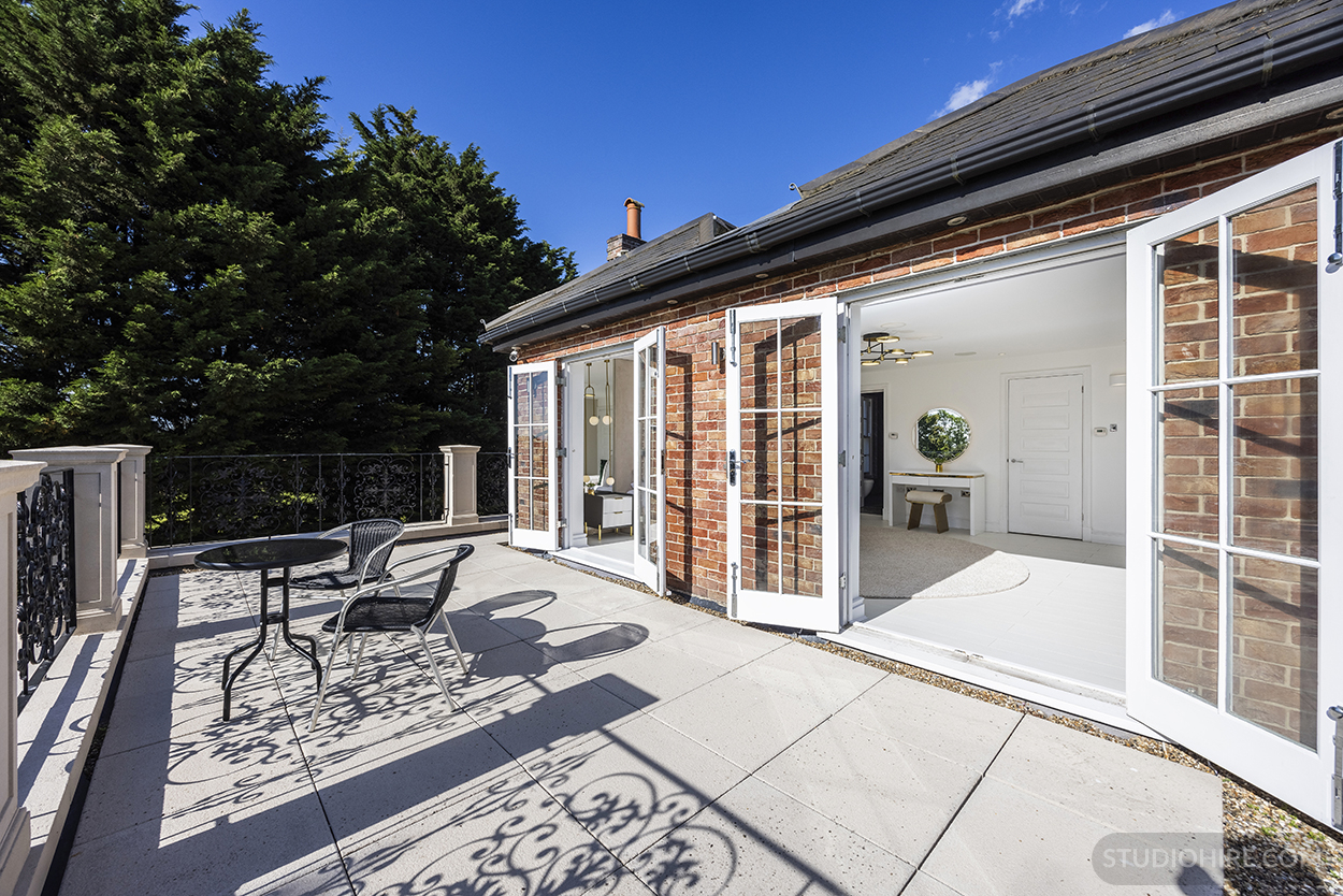 Externally, the property offers refined outdoor areas including an elegant veranda and landscaped surroundings, ideal for outdoor scenes, interviews or product shoots.