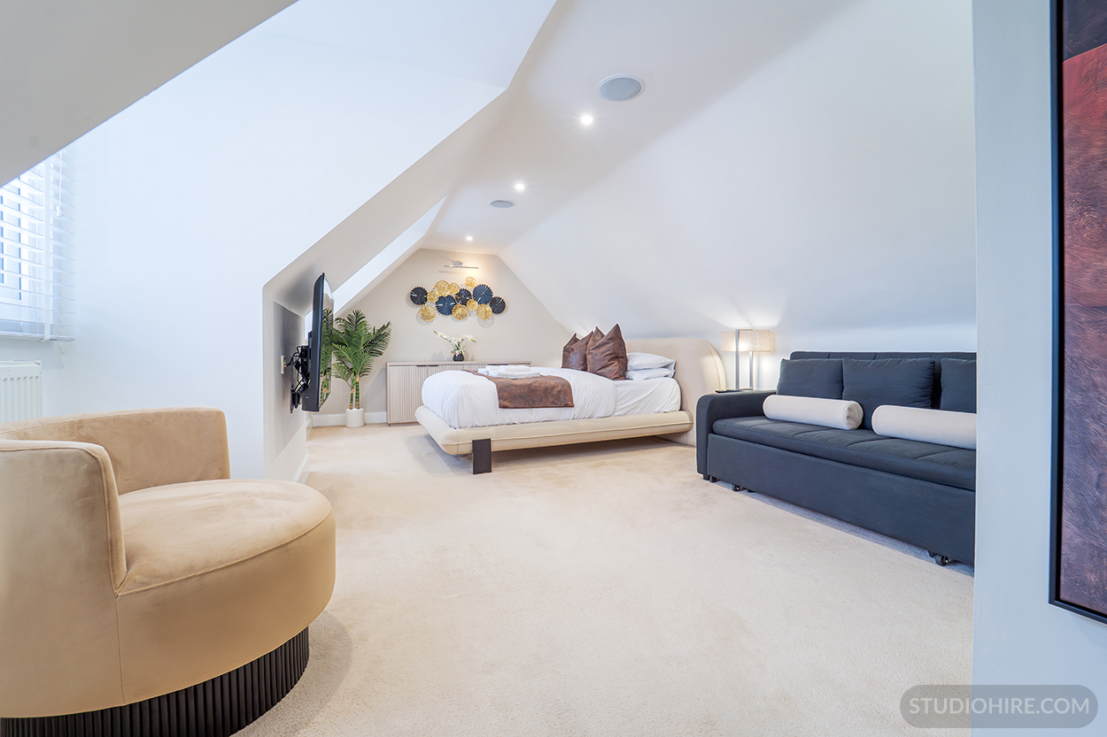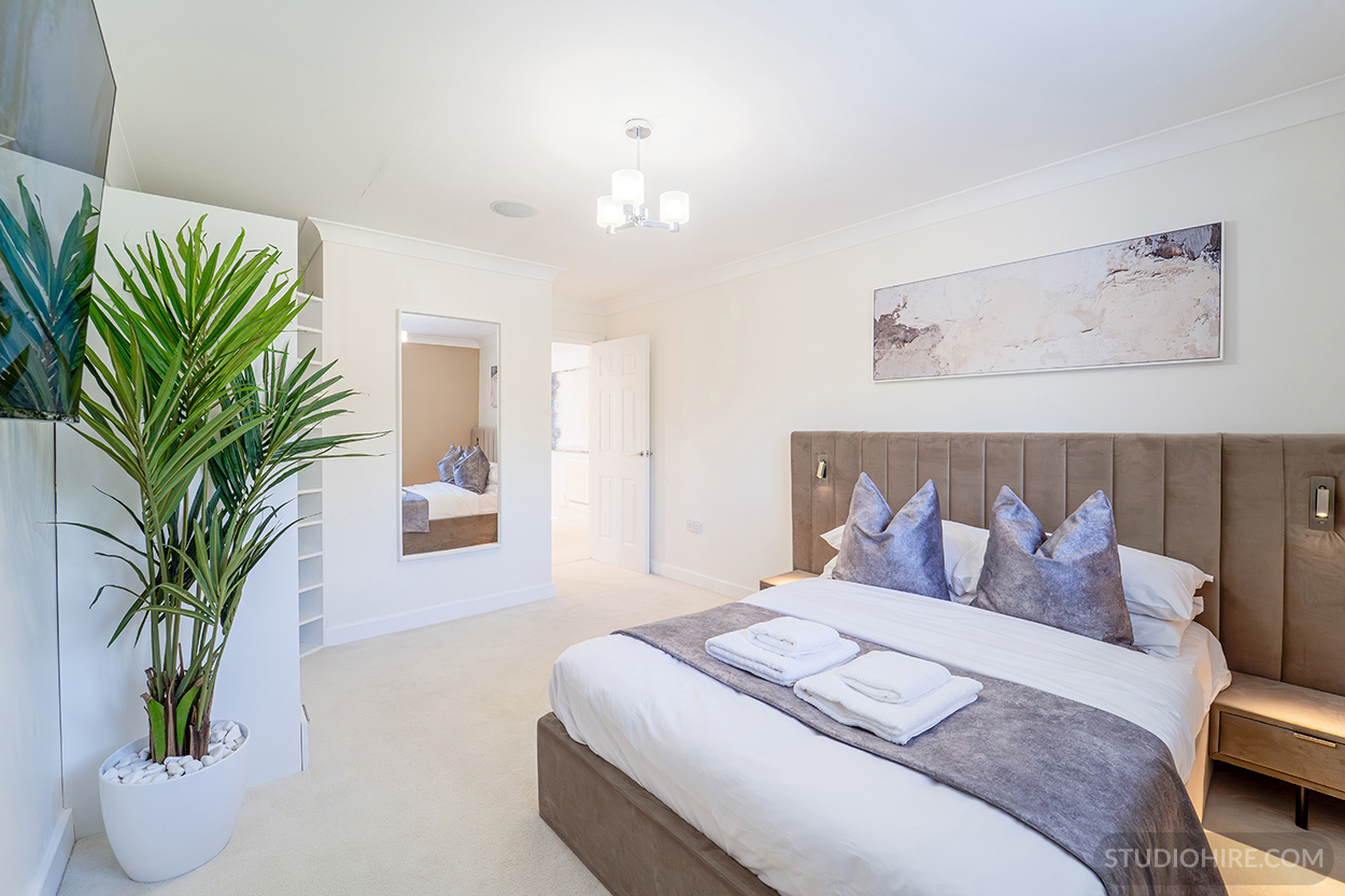 Master Bedroom on 1st Floor (with ensuite): King Bed + Double sofa bed (Sleeps 2–4)