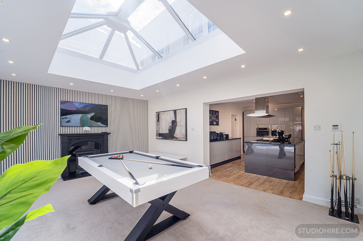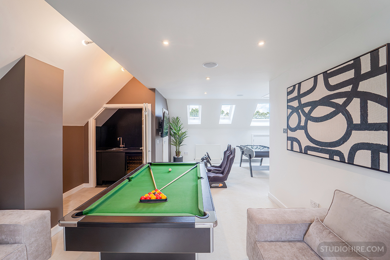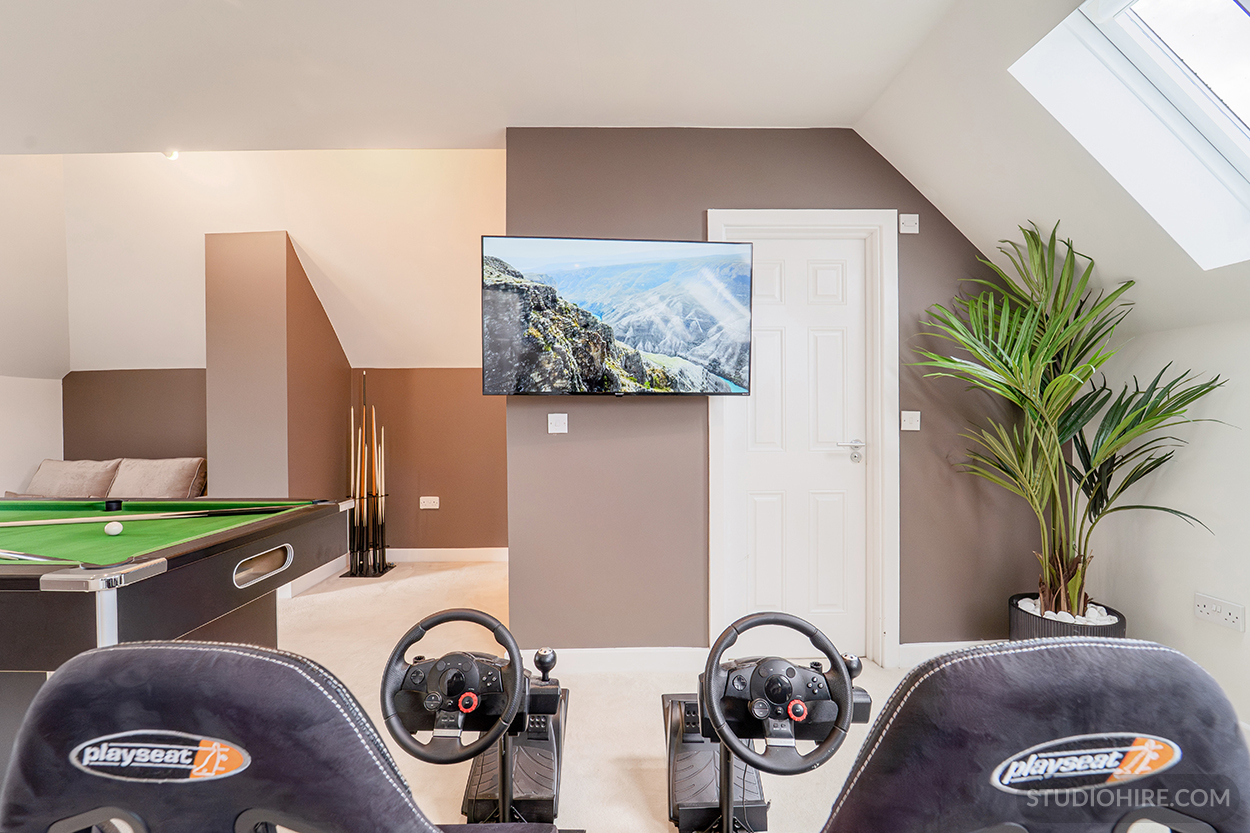 Games Room includes pool table – dart board – foosball – racing sim (PS3)