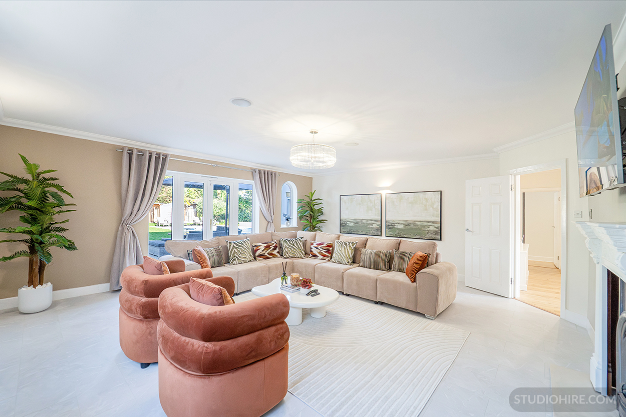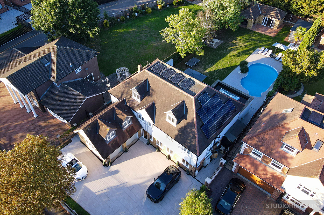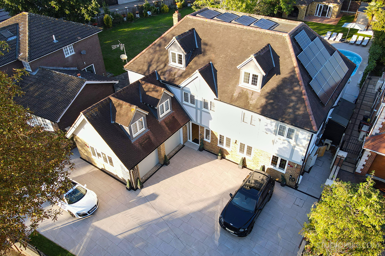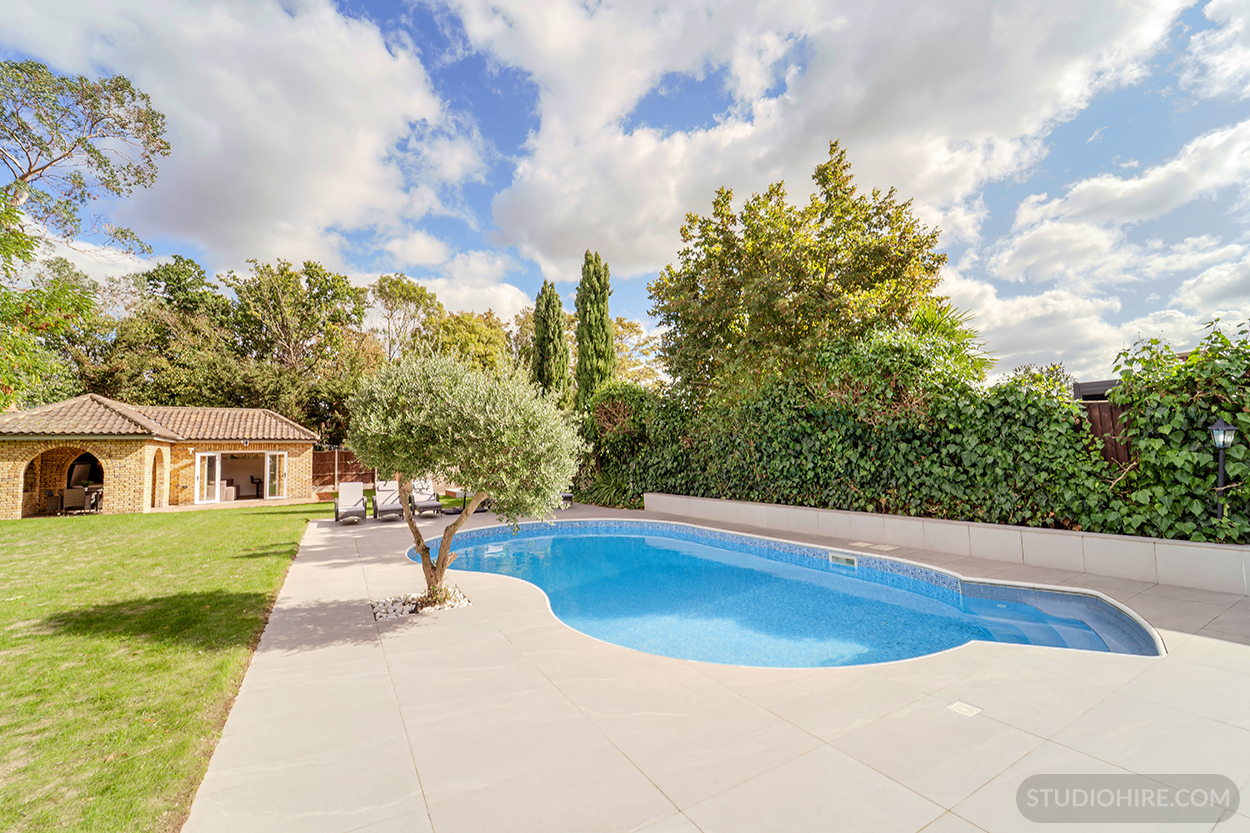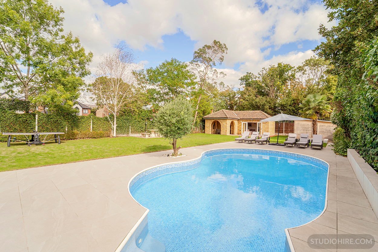 Located in the exclusive Emerson Park area of North East London/Essex, this 5300 sq ft gated villa offers resort style living with six bedrooms, five bathrooms, heated pool, jacuzzi, pool house bar, outdoor BBQ kitchen, games room and cinema.