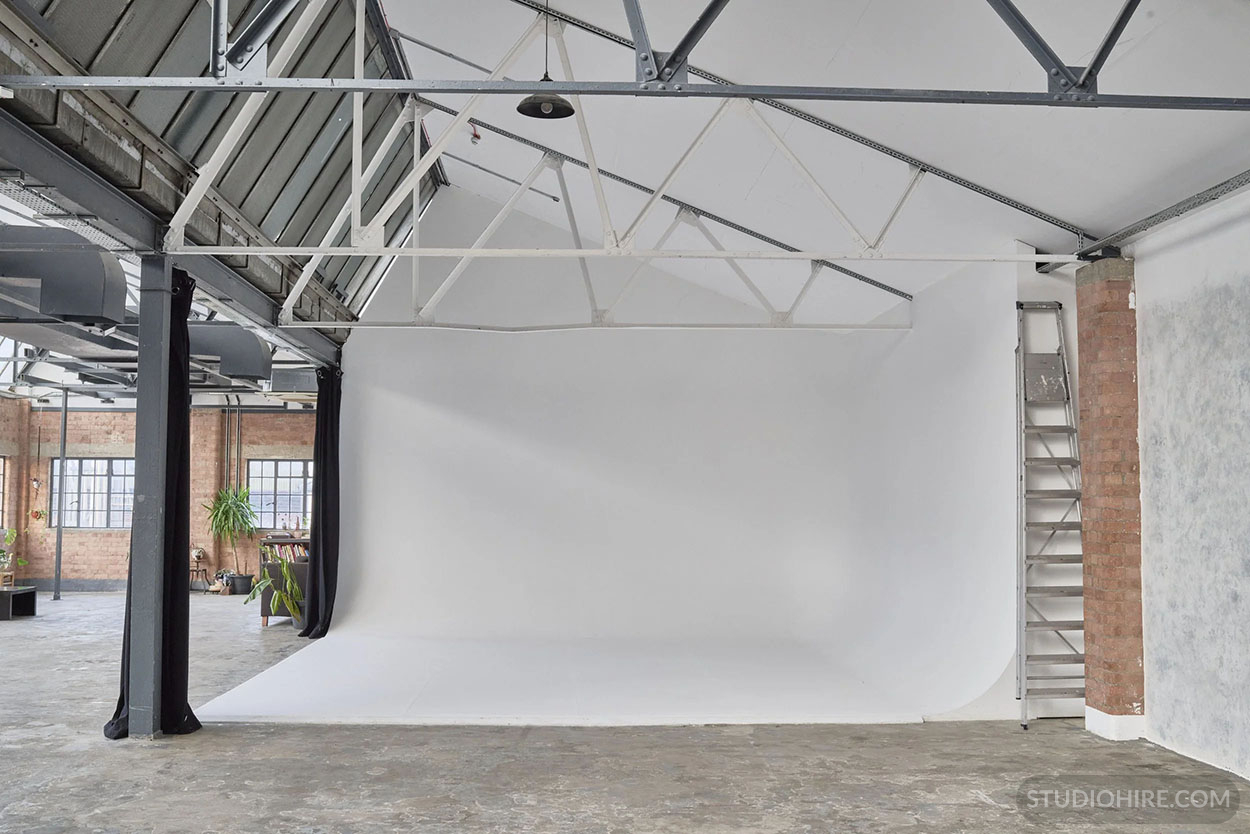 The studio is north–west facing and receives direct light through the Crittall windows and diffuse light through the sawtooth roof windows and cove area and windows above can be partially blacked out
