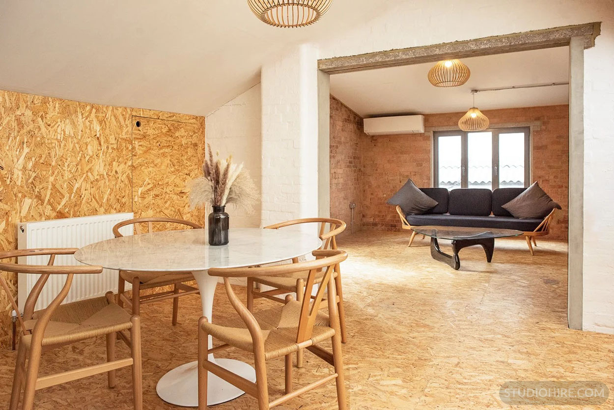 Whilst retaining the industrial feel, luxury has been factored in, facilities | features include air–conditioning, shower, green room, styling and makeup areas, plus an outdoor roof space with uninterrupted views of industrial East London