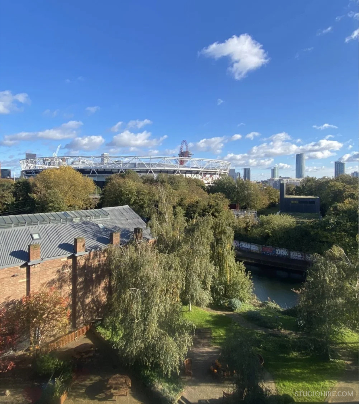 The space overlooks the Olympic Park stadium and sits directly on the canal within one of East London’s historic industrial buildings.