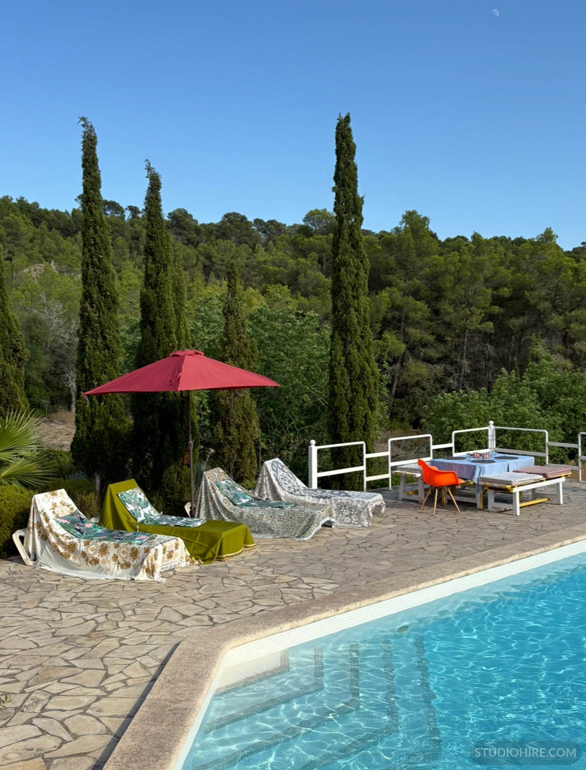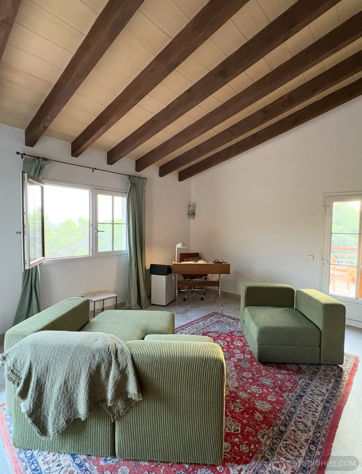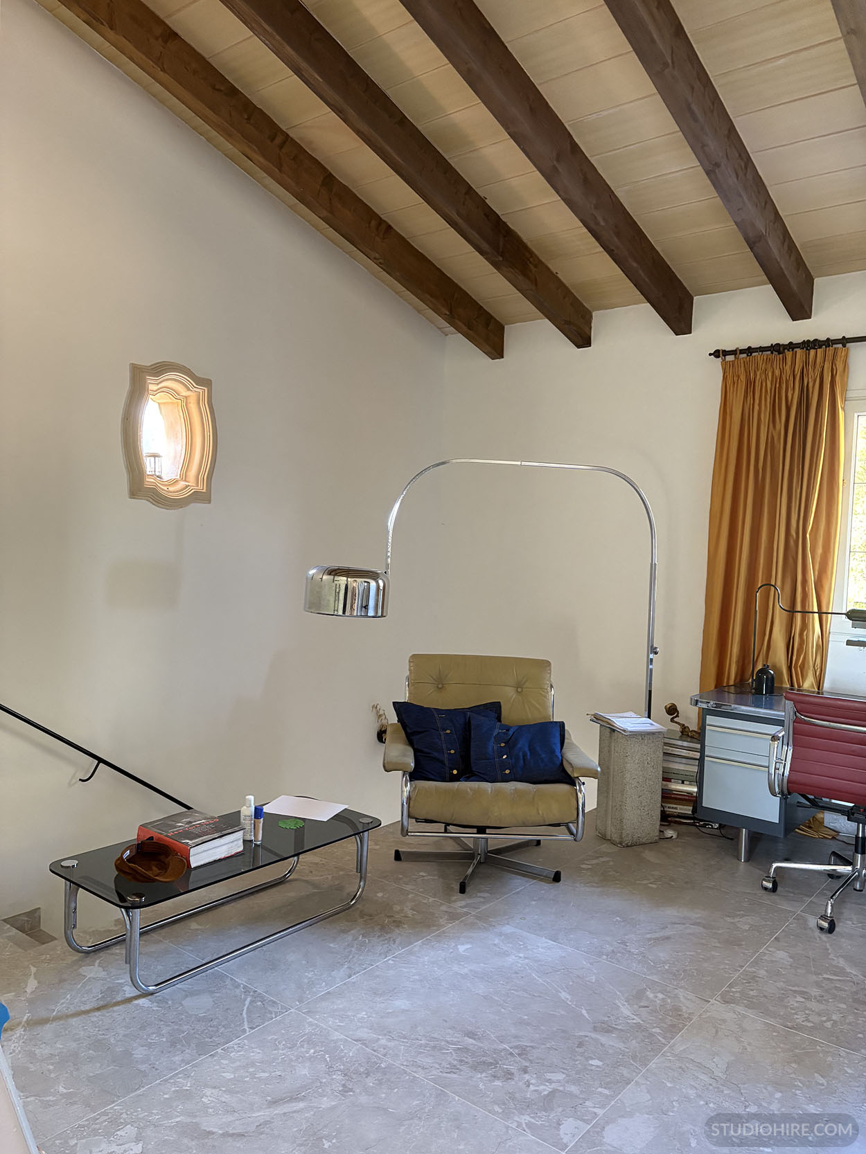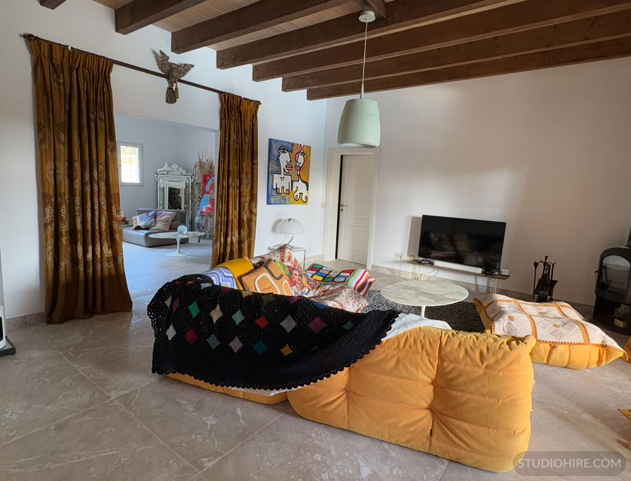The large sun filled kitchen, designed in a chic 70s narrative, is ideal for food shoots.
