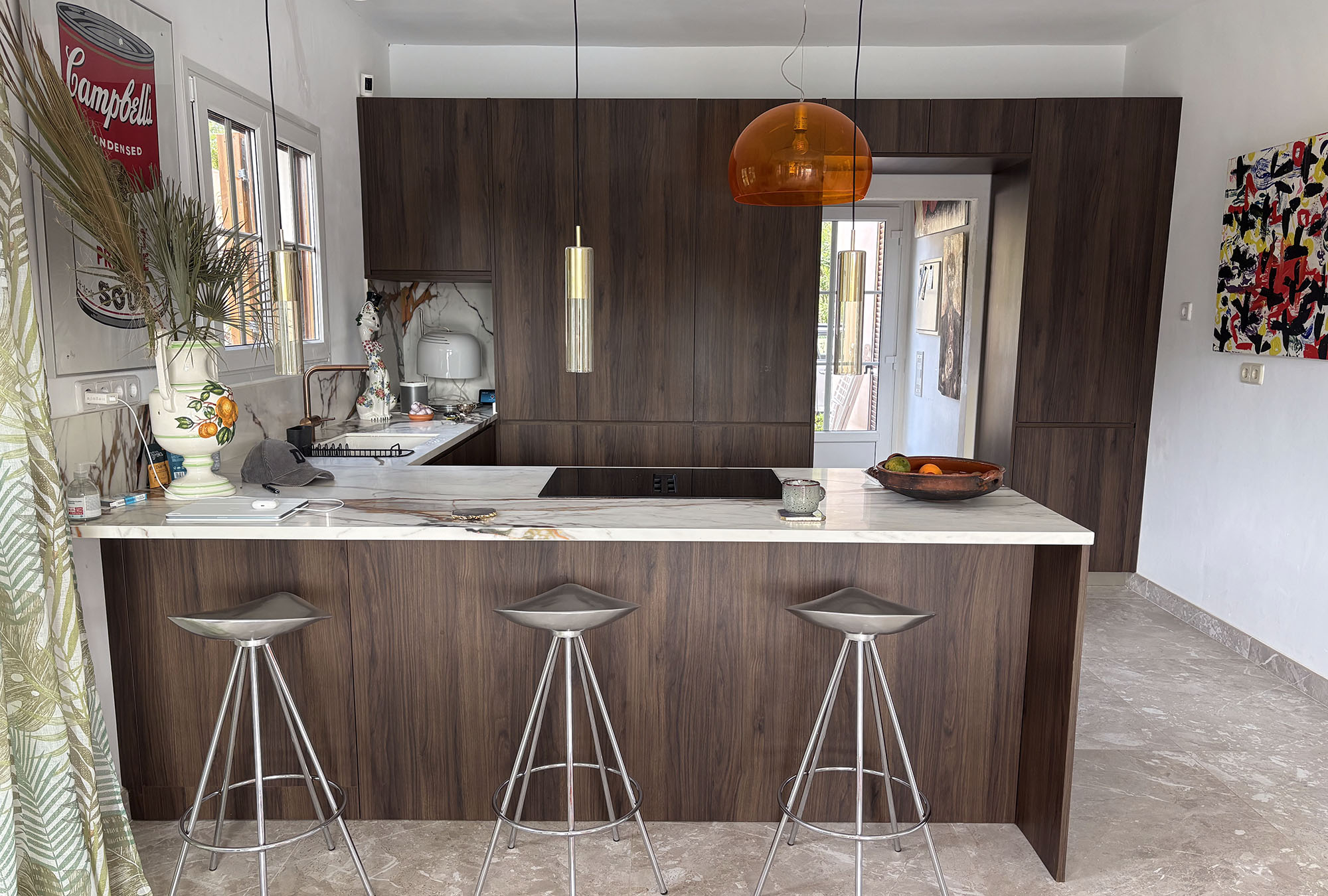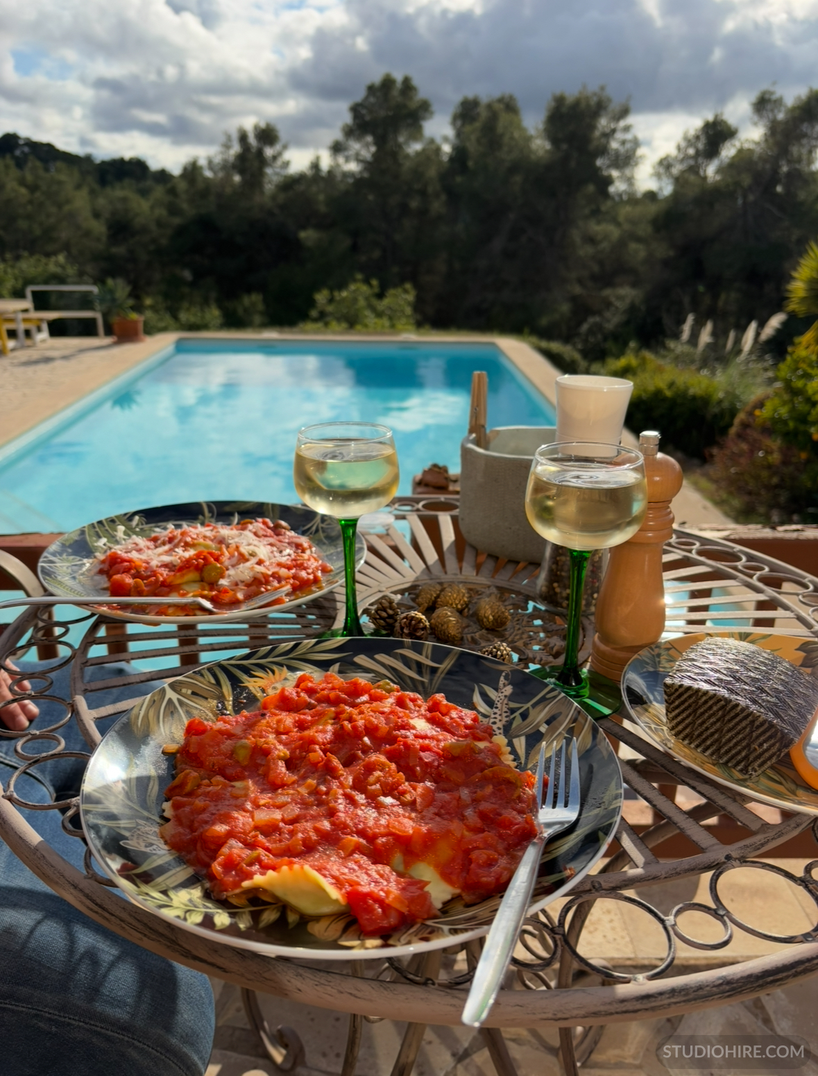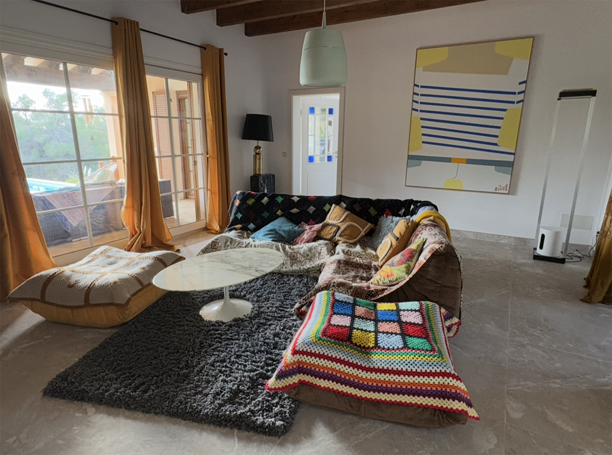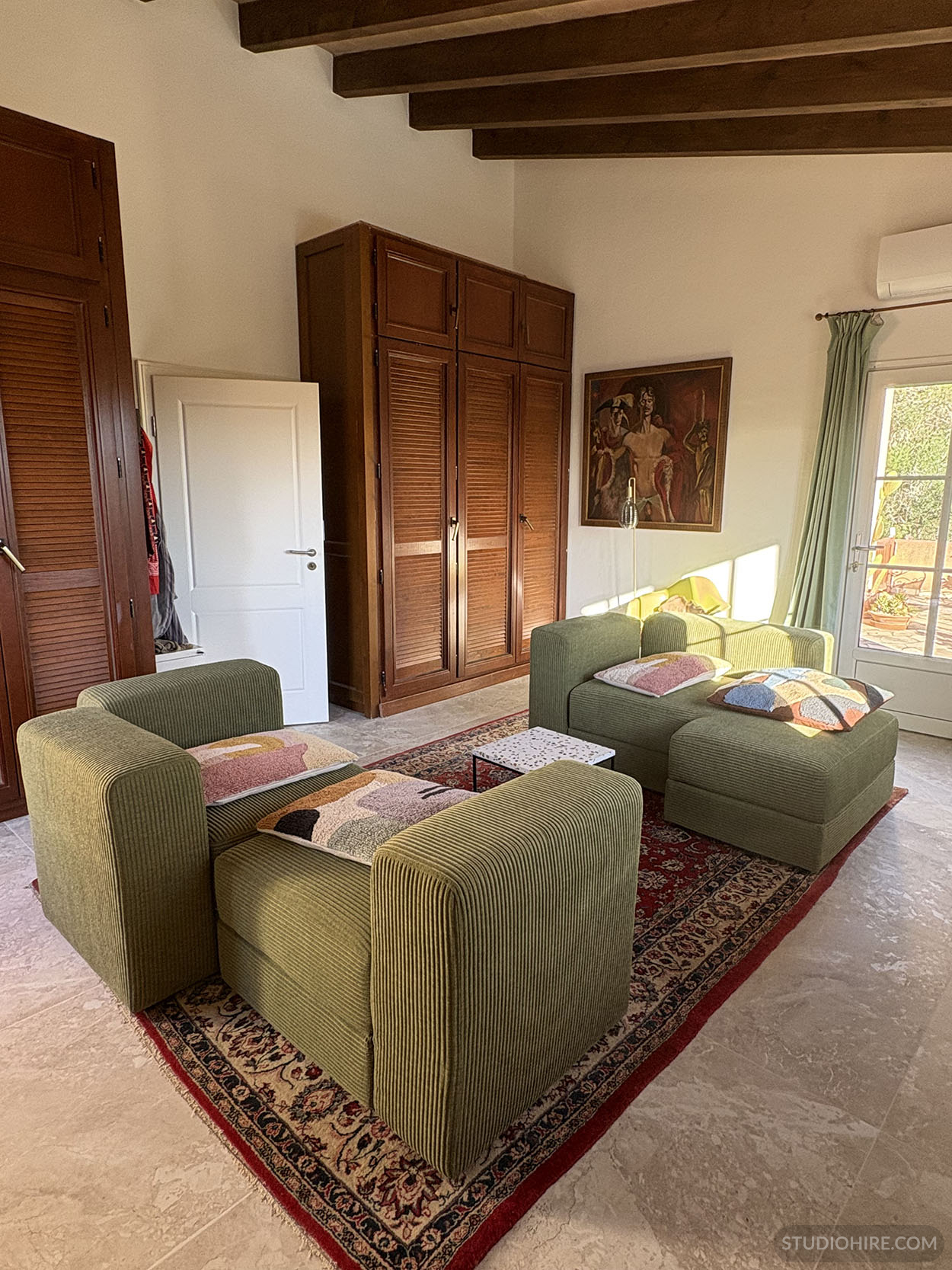 The large sun filled kitchen, designed in a chic 70s narrative, is ideal for food shoots.