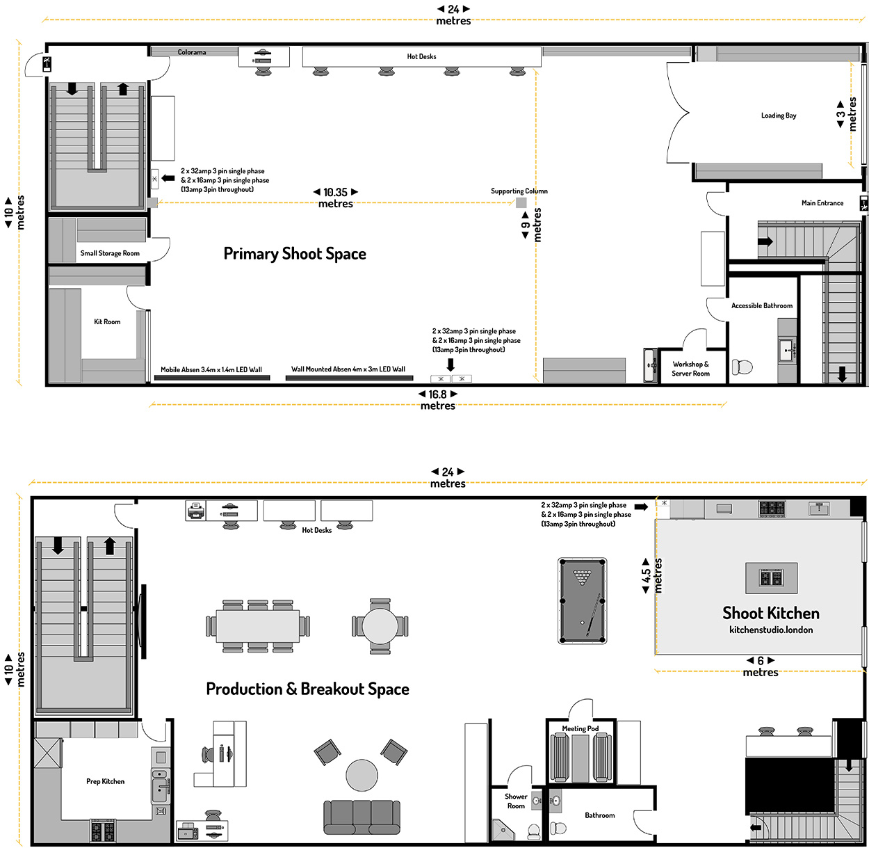 - Sound, power distribution + studio infrastructure